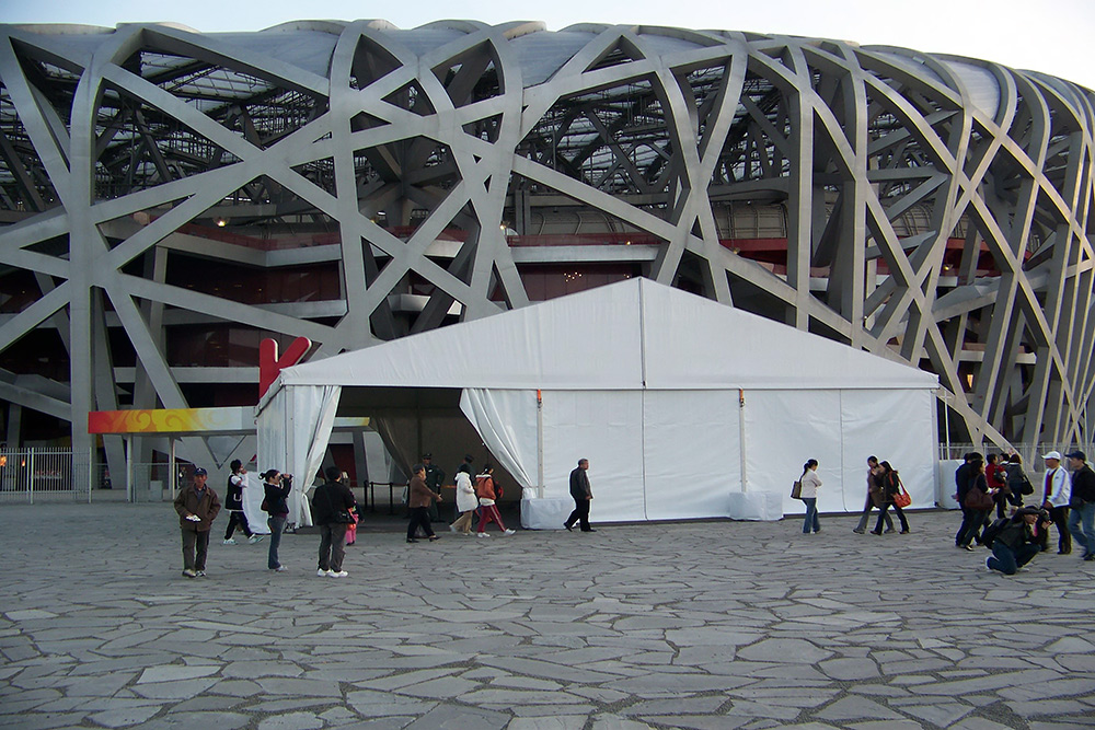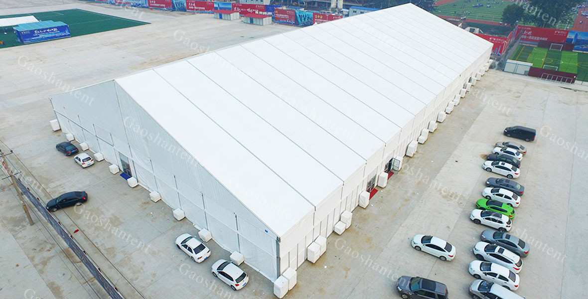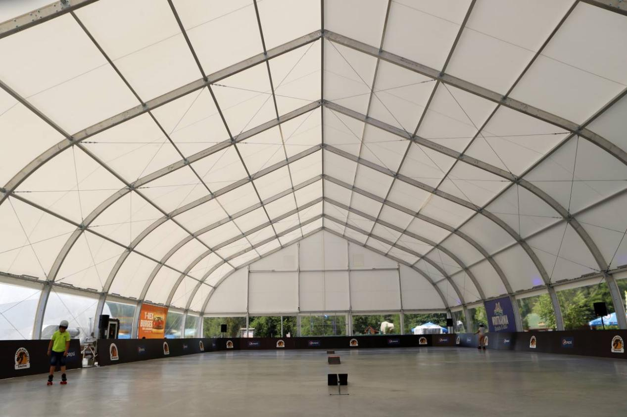 體育賽事篷房的魅力并不全在于外觀,更在于便捷性。對于不同場地的大小,可以自由組合篷房的間數和不同賽事的需求。對于場地的地面無論是沙地,草地,水泥地還是如大理石那樣不可破壞的地面,體育賽事篷房可以用膨脹螺絲、鋼釬以及承重盤,使篷房能夠安全穩固的進行搭建和使用,保證體育賽事的順利進行。